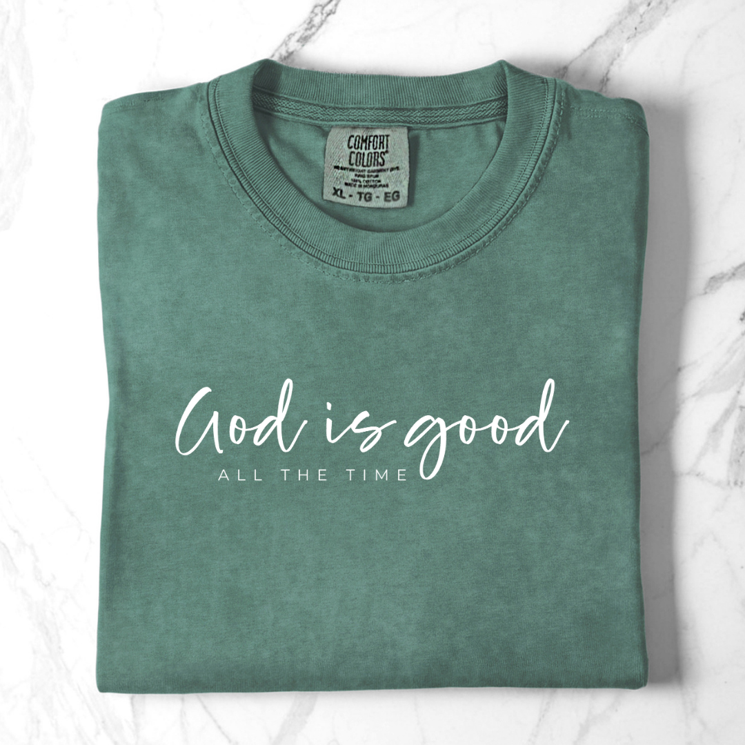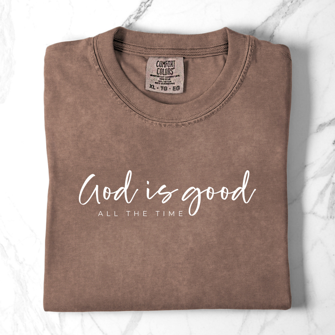 Bold faith meets everyday comfort. Our God Is Good – All the Time tee is printed on the premium Comfort Colors® shirt you love—soft-washed, garment-dyed, and effortlessly lived-in from the first wear. With its simple, heartfelt message, this tee is a reminder of God’s unwavering goodness in every season.