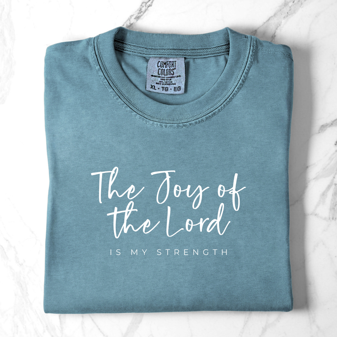 Bold faith meets everyday comfort. Our The Joy of the Lord – Is My Strength tee is printed on the premium Comfort Colors® shirt you love—soft-washed, garment-dyed, and effortlessly lived-in from the first wear. Featuring an uplifting, hand-lettered design, this tee carries the truth that His joy sustains us.